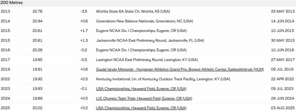 さらにさらに同年の全米学生選手権(通称NCAA)では、100mと200mで2位となり、その実力を全米に知らしめることになります。